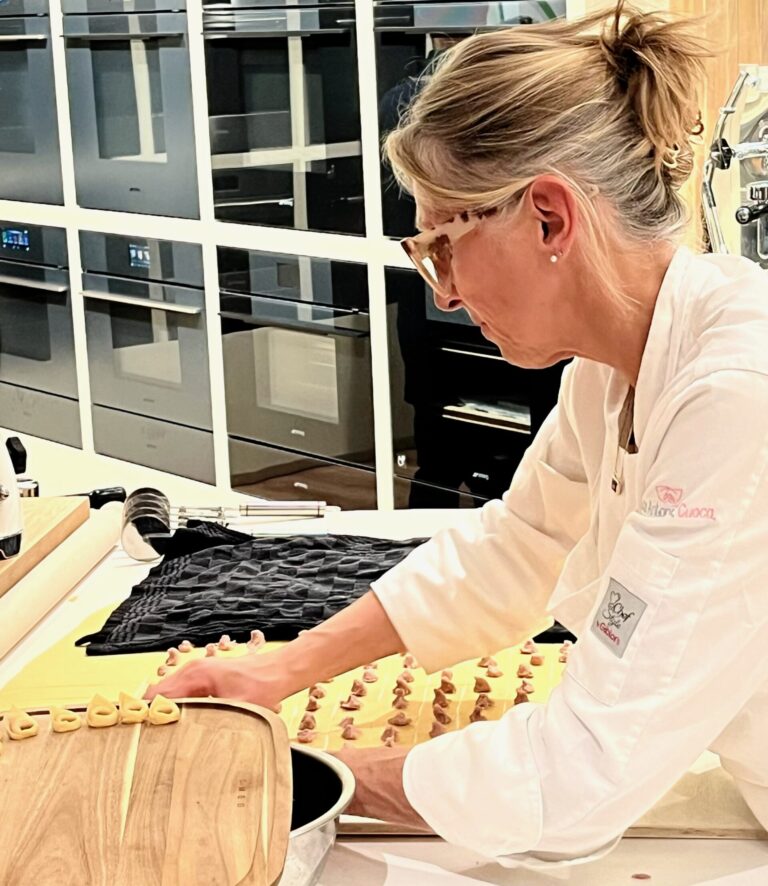 Dinsdagavond 11 november 2025; fonkelende lampjes heten ons welkom aan de IJhaven in Amsterdam: vanavond is het festa! De Smeg Showroom vormt het toneel voor een festa Italiana, een evenement ter ere van de tiende editie van de ‘Week of the Italian cuisine in the World’, ditmaal met als thema Health, Culture and Innovation. Onder het genot van een glas Prosecco ( of een alcoholvrije rosé Prosecco) was er gelegenheid om niet alleen de vele mede-uitgenodigden te ontmoeten, maar ook de diverse ontwerpen keukenapparatuur van Smeg te zien.